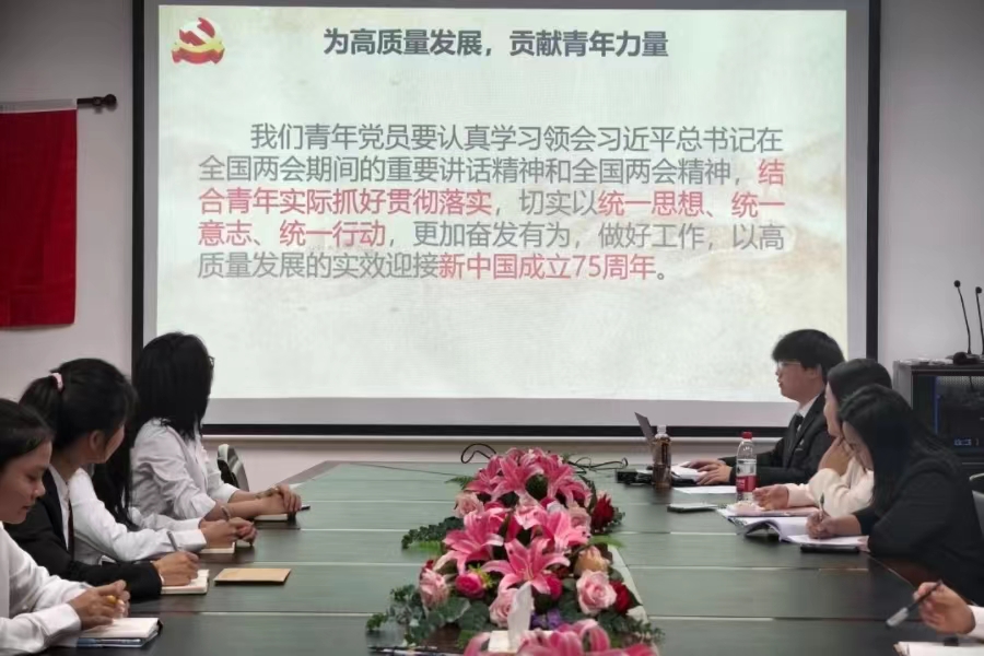 会议首先进行了第一议题学习,由张柳长领学习习近平总书记在全国两会期间的重要讲话精神和全国两会精神,共同深入学习并领会了“为高质量发展,贡献青年力量”的要义。与会党员纷纷表示今后将进一步加强理论学习,增强党性修养,不负重托,继续努力奋斗。