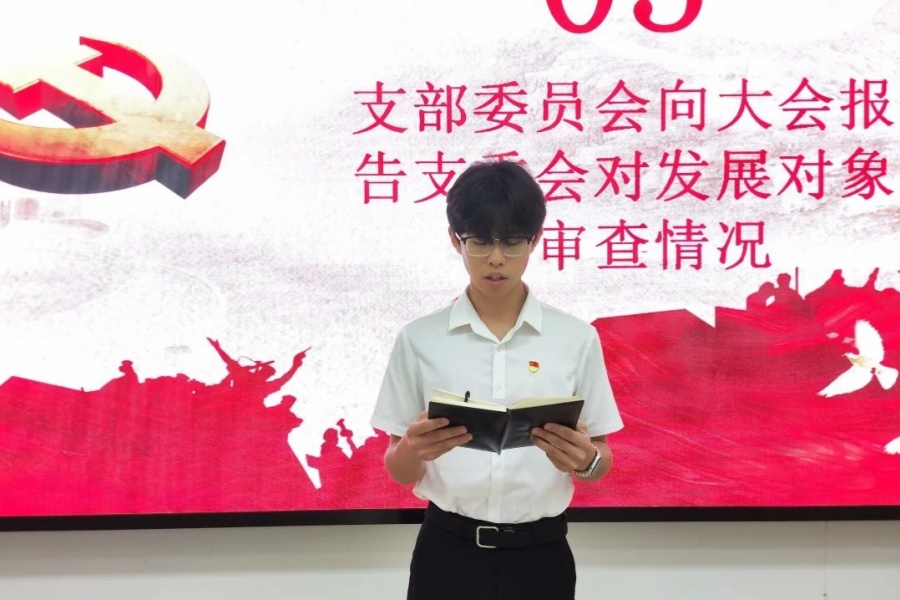 郑皓向大会报告支委会对发展对象的审查情况。宣布黄雅芳等9名重点发展对象的审查结果全体通过。