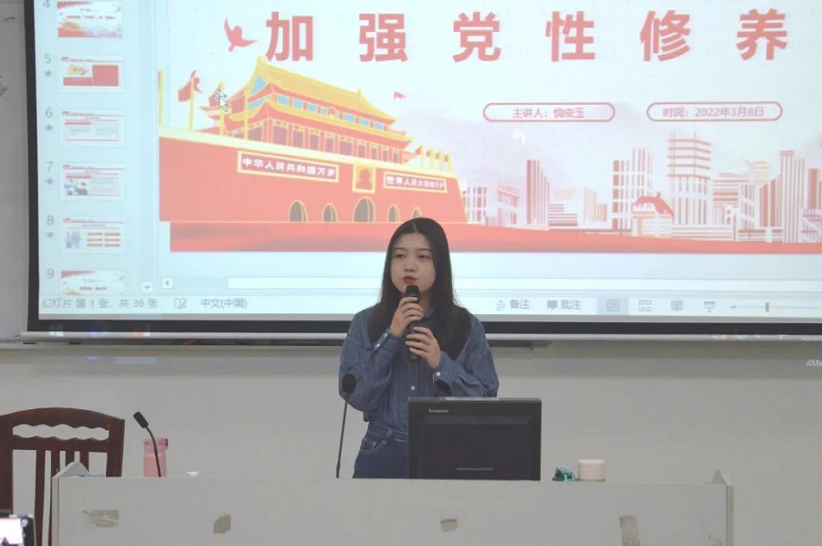 党课伊始,饶宏玉以《行走》微视频导入此次的主题,以视频中平凡之人的经历提升学员们对党性修养的体会,以入党初衷为切入点鼓励学员们分享自己的入党初心。课上,饶宏玉分别从“党性修养的内涵、讲党性重品行、敢作为勇担当、守纪律改作风”等四个方面与学员们进行讲解,强调要坚持理论联系实际,进一步加强学员们对党的认识和对党的基本理论、党章党规、方针政策等知识的理解。饶宏玉提出希望学员们可以加强自身的政治修养、理论修养、道德修养、作风修养和纪律修养,深刻领悟“四个意识”、“四个自信”蕴含的深层逻辑,把坚决做到“两个维护”作为最高政治原则和根本政治规矩,同时要求大家把牢思想的“方向盘”,坚定理想信念,严守底线思维,严格遵守规章制度,为师生服务,做好表率作用,既不做得不偿失、悔之晚矣的事,也不做瓜田李下让人指指点点的事,把使命扛在肩上,时刻以一名党员的标准严格要求自己,做一名政治坚定、遵规守纪的明白人。