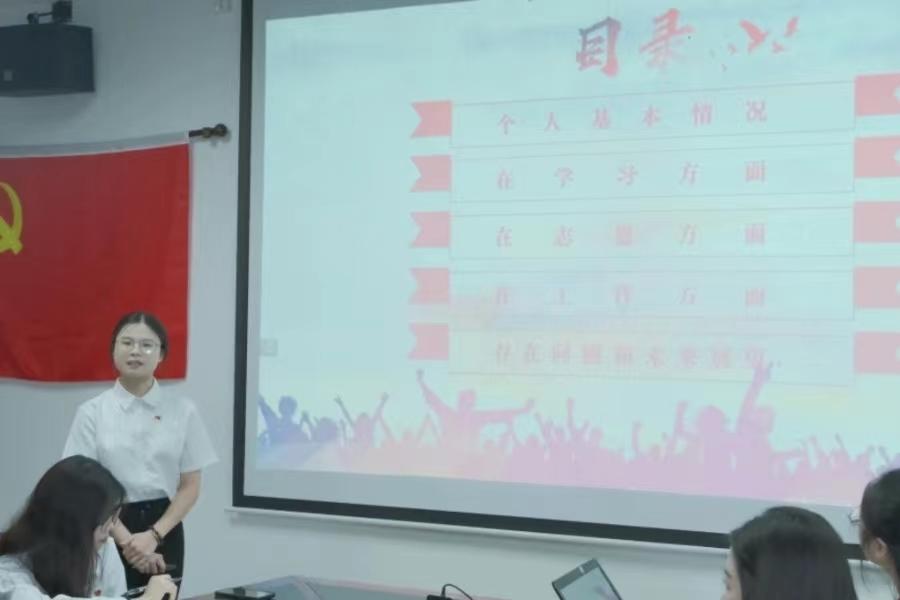 会议第二项流程,徐少清等6名同志分别从预备期内的政治思想、志愿服务、学习生活等方面向党组织汇报自己一年来的情况,表示在今后将会不断进步,保持优良作风,积极为党和人民服务,并提出如期转为正式党员的申请。