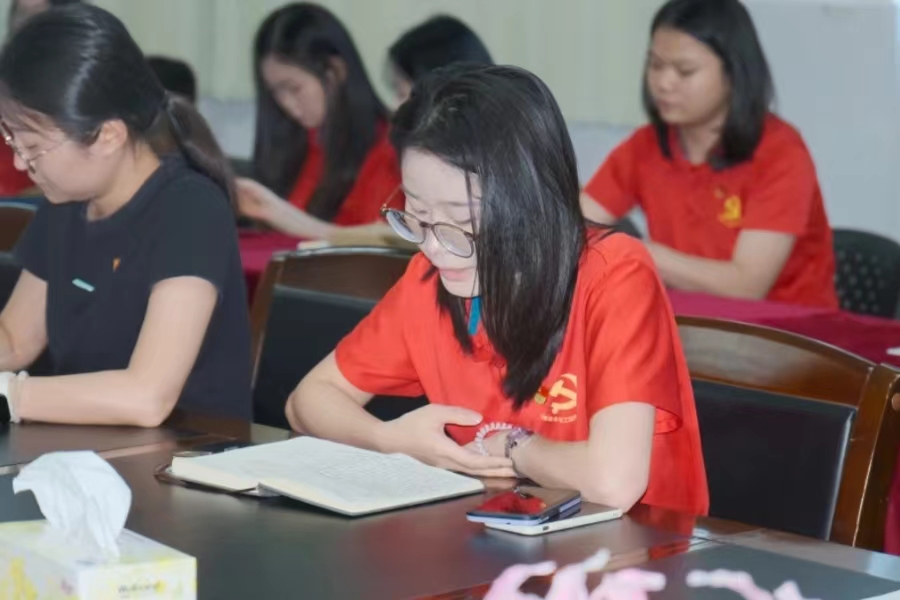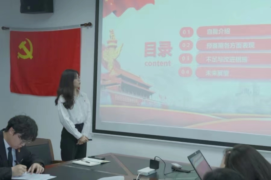 会议第三项流程,入党介绍人饶宏玉、吴洁雪同志和赵美娟同志分别从思想、工作、生活等方面对徐少清等6名同志在预备期的情况进行阐述,并同意徐少清等6名中共预备党员同志按期转正。