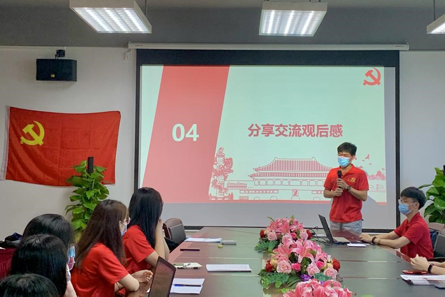 为更好地发挥电影的特殊重要作用,以庆祝中国共产党成立100周年为核心,以“学党史、感党恩、强党建、正党风”为重点,suncitygroup太阳新城员工第三党支部于6月3日中午12时30分,在第六教学楼205举办“观红色电影,学百年党史“红色电影观影活动及给新党员授徽活动。出席本次会议的有suncitygroup太阳新城员工第三党支部书记廖琪同志以及suncitygroup太阳新城员工第三党支部全体同志。本次会议由员工第三党支部宣传委员蔡文龙同志主持。