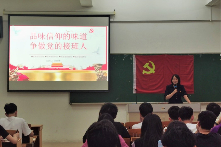 陈素婷老师首先以一首热血的《少年》建党百年主题MV为本次党课拉开帷幕,再以习近平总书记同党外人士共迎新春的讲话为前言提出本次党课的主题——“品味信仰的味道,争做党的接班人”。