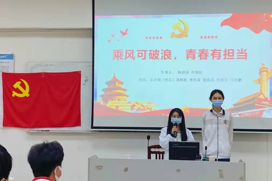 实践课以小组为单位的微党课演讲形式开展,“忆党史、燃青春、创未来”。在微党课的分享中,每个小组都讲述了自己对主题的理解和认识,联系当下时事的热点,展现新时代青年的担当。在主题“乘风可破浪,青春有担当”分享下,我们更是明白要铭记先烈、以史明志,在青春奋斗的道路上不忘历史、不负祖国,勇于乘风破浪,担当起党与国之未来。中国共产党在历经百年历史积累与沉淀下,此刻正是党的青春与我们交汇之际,愿你我共享青春、共向未来。百年来党的不懈奋斗史、不怕牺牲史、理论探索史、为民造福史、自身建设史,让中国共产党积累了弥足珍贵的历史经验。“百年大党正青春”,党的百年风华正青春,这青春源于坚定信仰、源于自我革命、源于自信自强。在微党课上,学员们认真地聆听微党课分享并安静地记录笔记,笔记上工工整整的记录着微党课中学到的百年来的历史浓缩。到了微党课演讲结束,廖琪老师对这次的分享会进行了评价并开展提问和党课学习心得分享的环节,学员们纷纷放下手中的笔,积极回答问题,踊跃分享心得。