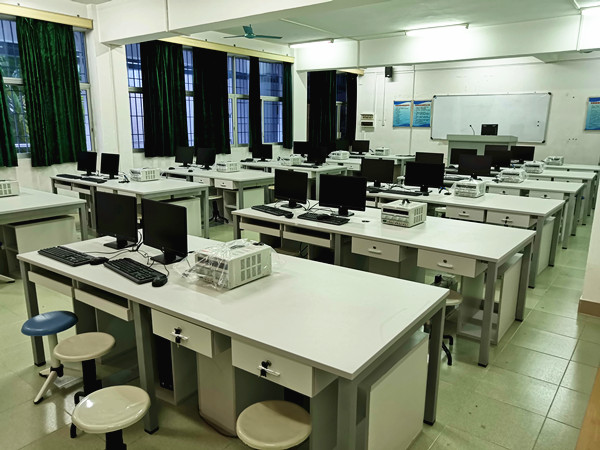 实验室配置有计算机29台,单机主要配置:惠普288,CPU:I5,16G内存,1T硬盘,液晶显示屏,无线路由2台。配有实验设备:示波器15台,稳压电源15台,热转印机1台,风枪烙铁机5套,开发套件等若干套。设备投入约243383元。