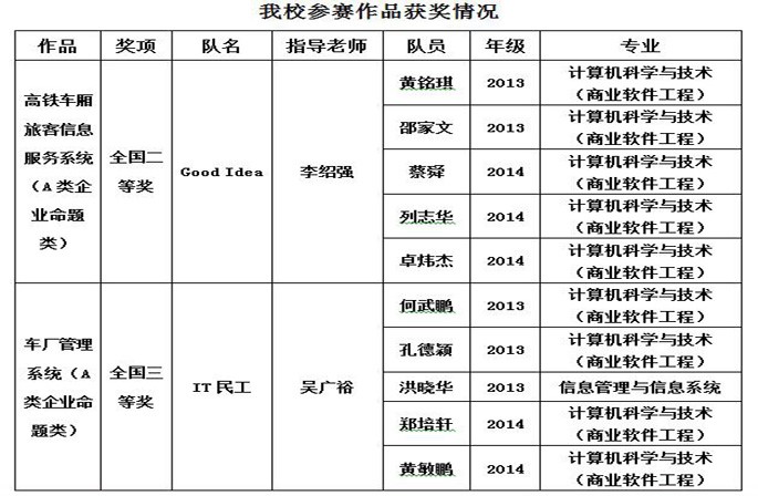 suncitygroup太阳新城有五支代表队参加此次比赛,在李绍强、孔宇彦、何文海、吴广裕和黄金雪等指导教师的带领与指导下,从4月开始,历经报名、选拔、培训、校内初赛和暑假期间的备赛,经过激烈的初赛跻身决赛。其中一支参赛队伍在A类(企业命题类)中晋级全国总决赛,与厦门大学、中南大学、台湾清华大学和印度NIIT大学等公司参赛队同台竞技,并获得全国二等奖的好成绩。