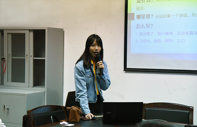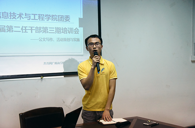 培训伊始,秘书长钟杏燕同学简单阐述了召开本次培训会的意义所在,其通过PPT课件和干部们上交的公文讲述了公文的类别以及干部们在撰写公文时出现的常见错误,并且做出格式方面的正确示范。干部们在台下认真听讲,积极做笔记。培训继续,组织部部长王俊祺同学上台就如何开展活动做了详细讲解,包括活动前期策划、彩排、和活动当天各部门的具体要求,也指出了在先前举办活动中出现的错误,希望干部对活动策划有更加深入的认知。培训末尾,副书记陈彦生同学发言道,参与公文的写作与活动的策划、开展有助于增强干部们工作的严谨性及工作执行力,是提高自身综合素养的平台,其鼓励干部们珍惜机会、积极学习。陈彦生同学提出,作为员工干部应该做到自信、自强、有素质、懂礼貌,在工作中要严谨踏实,其希望干部们在工作中个人的综合素质有所提高。至此,本次培训会圆满结束。