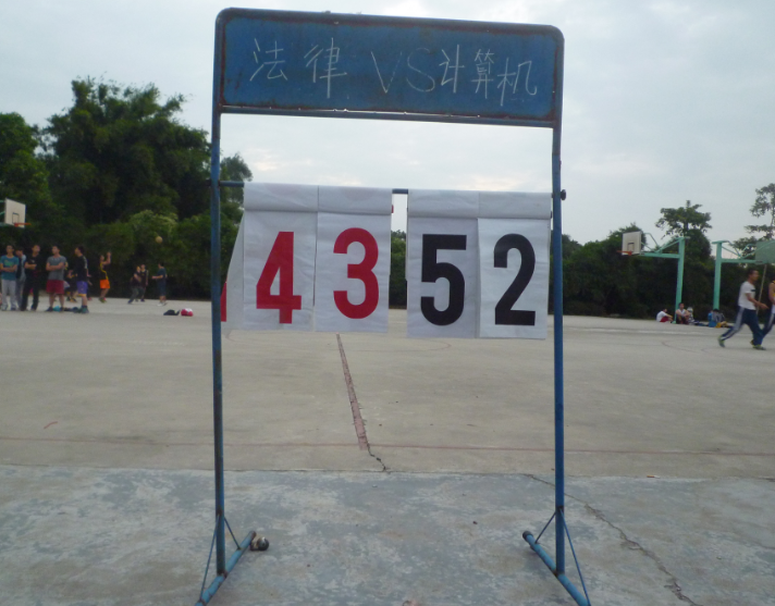 比赛开始后,法律系队的进攻流畅而有序,但是计算机系队也不甘示弱,他们用高强度的防守抵挡住法律系队一波又一波凶猛的进攻,而且还打起了几次快速进攻,取得了暂时的领先。比赛随着比分的增加而显得更加激烈,法律系队通过几次的全场紧逼,顿时让计算机队系陷入了窘境,逐渐地把落后的分差拉近了。尽管领先的优势被缩短了,计算机系队的队员们也并没有泄气,而是稳扎稳打,慢慢寻求拉开比分的机会。就在观众们阵阵的加油助威当中,逐渐地,稳住心态的队员们又再一次通过行云流水的进攻将比分拉开,并且最后计算机系队伍以52:43的比分取得了这一场如此关键和重要比赛的胜利,一举挺进了决赛!