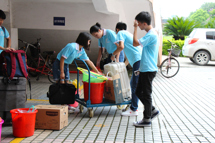 志愿者在广商教学楼前集合