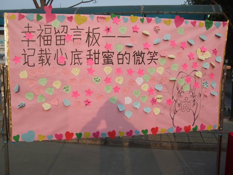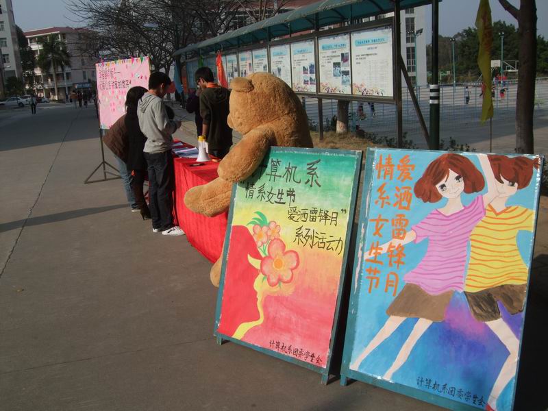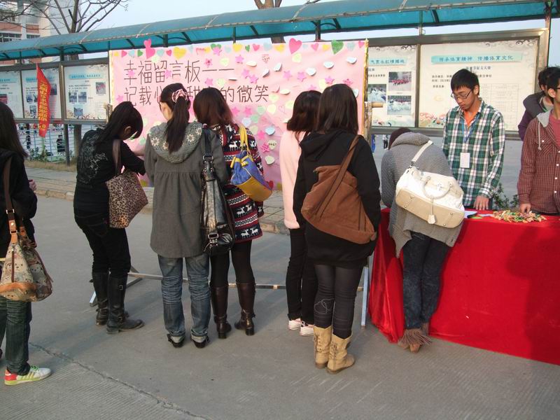 春风吹拂着女生们美丽的秀发,幸福留言板上承载着她们的祝福。为了迎接女生节和雷锋月的到来,我系团委员工会于3月3日至3月7日下午在排球场旁进行“情系女生节,爱洒雷锋月”的摆摊宣传活动。