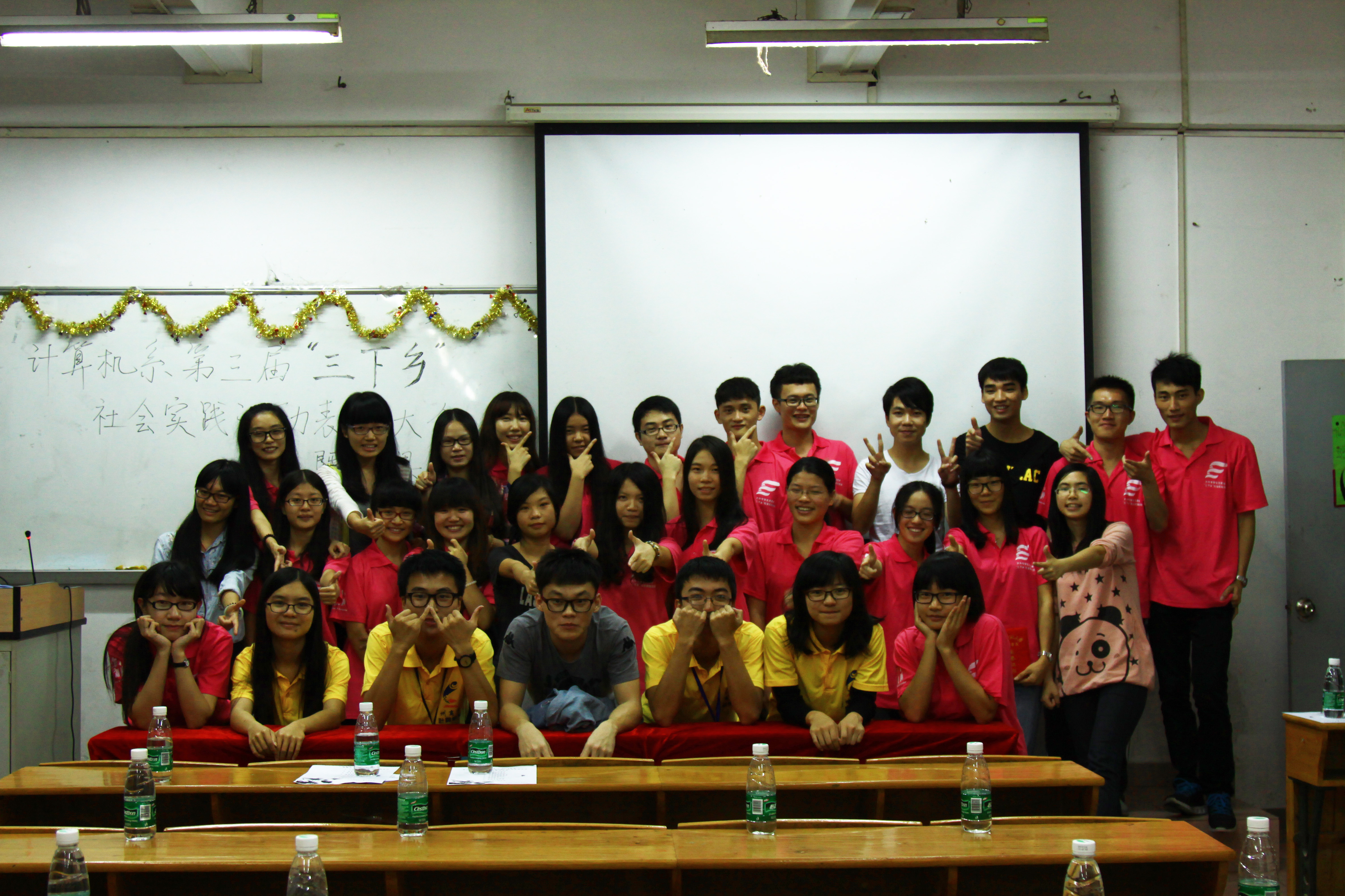 为了表扬和鼓励在本次活动中表现突出的优秀先进个人,计算机系团委特于2014年11月30日晚上7:30在B105隆重举办计算机系第三届“三下乡”表彰大会。出席本次活动的嘉宾有计算机系团委副书记麦丽仪同学,计算机系团委秘书长林奕希同学,计算机系三下乡服务队成员以及院、系代表。