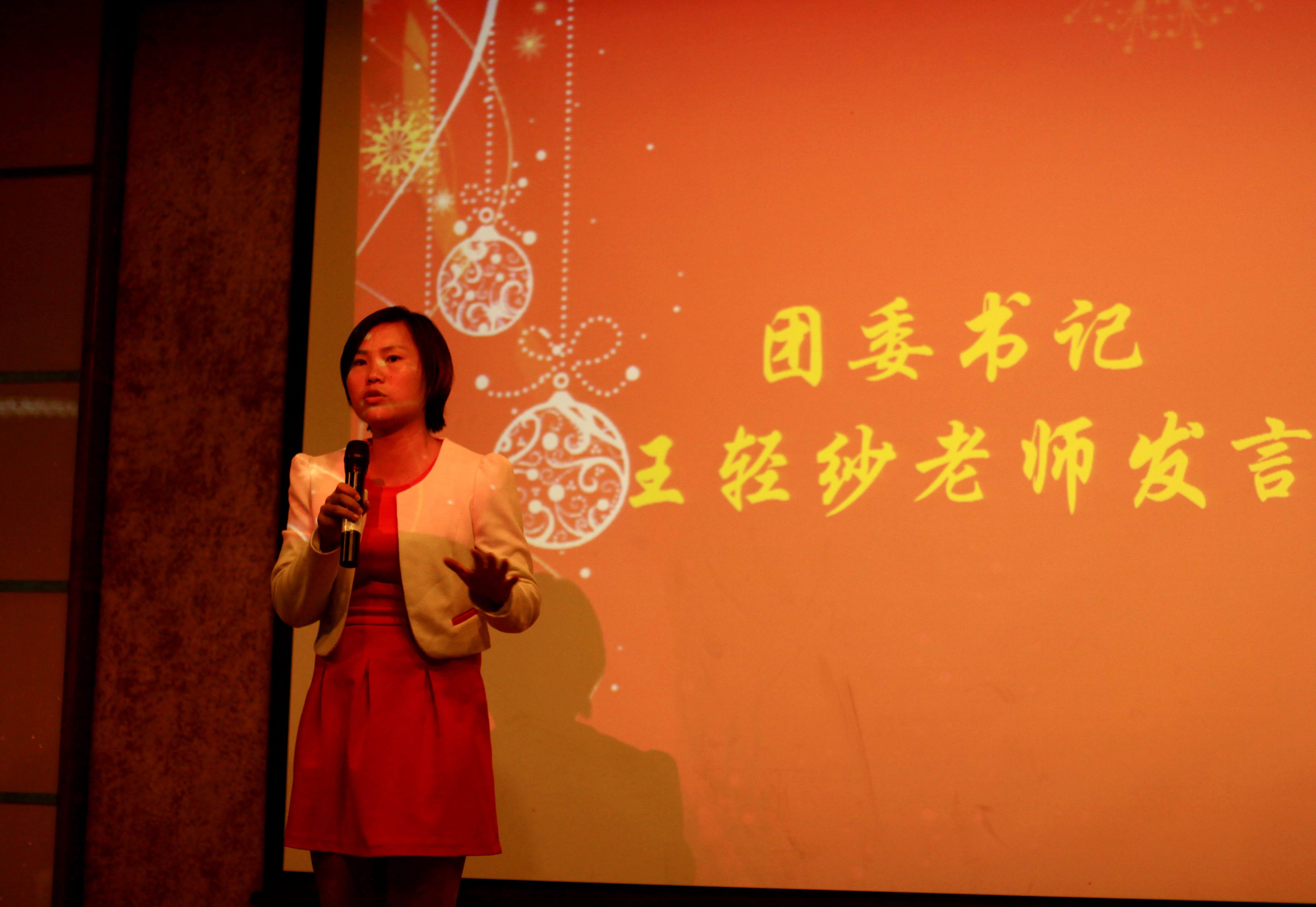 一段讲述伟大祖国在短短65年里发生了翻天覆地变化的精彩视频拉开了活动的帷幕,随后便是计算机系团委书记王轻纱老师的精彩讲话。在王轻纱老师的讲话中,提及到了各位团员进团的原因以及意义,并且根据某些员工不积极参加早读、校运会等的现象,提出希望本次活动能够增强各位团员的团队意识,并且希望能够提升各位干部干事的个人业务水平、提升班级凝聚力以及每位团员的爱国主义感,做到经理所说的“哪里有付出,哪里就有收获”!