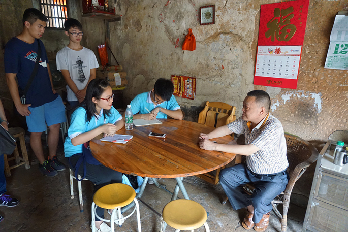经过一个中午的准备,下午15时志愿者们来到中华街的42号小屋,礼貌诚挚地采访了张宜昌先生并与之合影留念。采访中,张宜昌先生表示,曾与一家北京服饰公司合作,以特制的竹编灯笼作为服饰作品展的背景元素,进一步传播了客家竹编文化。随后,队员们采访了在中华街里巷居住的张焱祥老人。在采访中,老人拿着“梅县民间竹编灯笼技艺大师”的荣誉证书,满脸自豪地说:“做了那么多年,成就感还是有的,制作竹编灯笼还没有人能比得过我”。