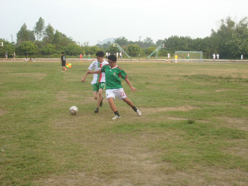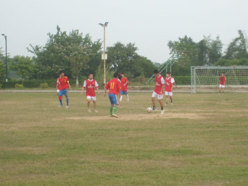 狂风猎猎,足球场上两支队伍蓄势待发。4点30分,在裁判的口哨声下,双方开始了激烈的角逐。计算机系队的攻击十分猛烈,但会计系的防守也十分严密。双方队伍默契的传球,几近完美的配合,使得几次危险的射门被同样危险的防守化解,其中的艰险与紧张,扣人心弦,引得全场观众呼声连连。