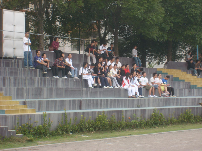场上的比赛热火朝天,场下的啦啦队激情四射,呐喊声随着足球在空中抛出的曲线高高低低,上上下下,让每一个观看者的心情都随着那颗跳跃的足球起起伏伏。
