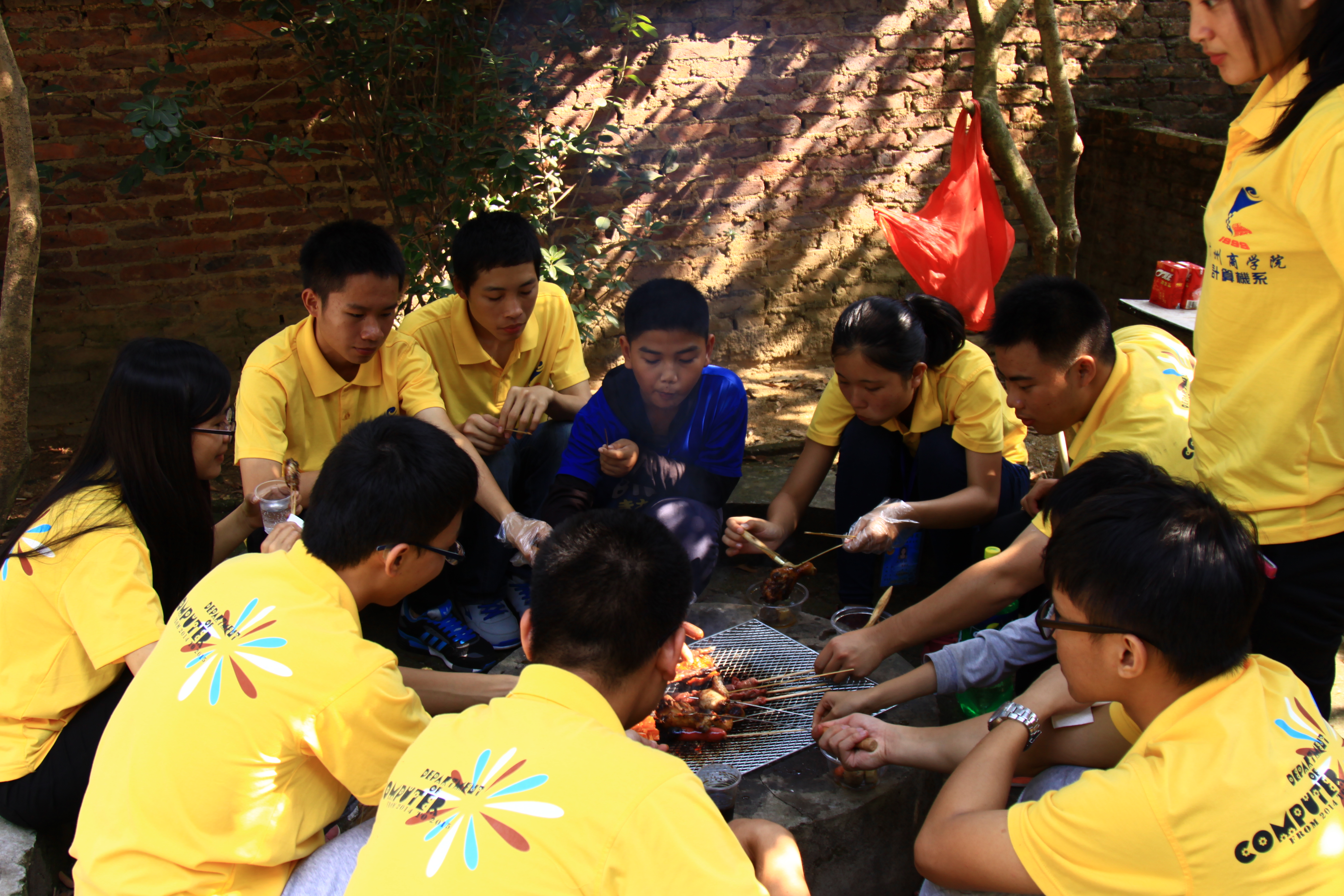 在游戏环节过后,气氛渐入高潮,此次计算机系团委户外培训活动亦是开始进入第二个环节——烧烤,早在游戏环节之时就有热心的干部干事们将烧烤所需的菜品准备完毕,在来到烧烤场后,干部干事们亦是跃跃欲试,纷纷是八仙过海各显神通,生火开炉一气呵成,不一会儿便有阵阵香味飘出,引人垂涎。在烧烤过程中,各部门的干部干事都能融入其中,积极互相交流,也展现出计算机系团委相亲相爱一家人的画面。