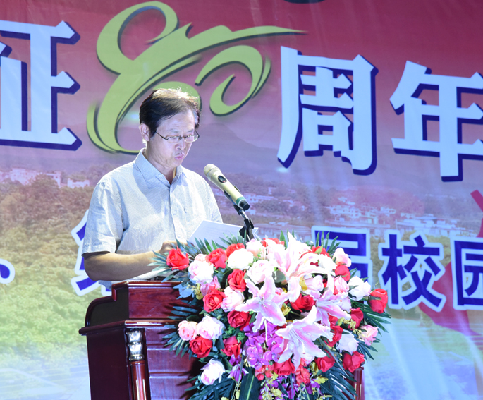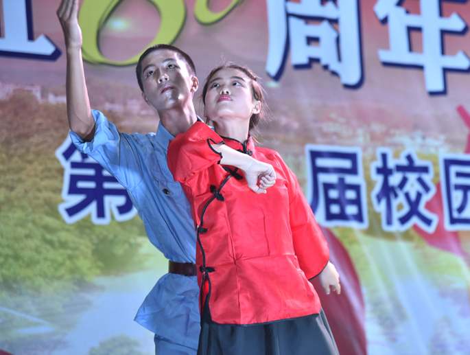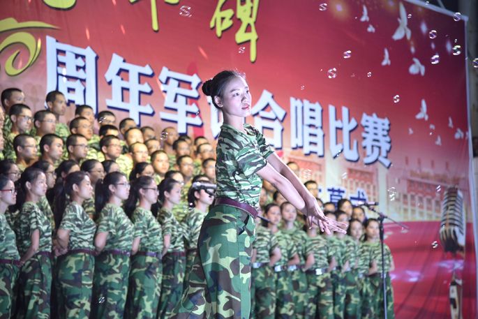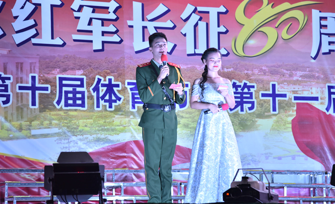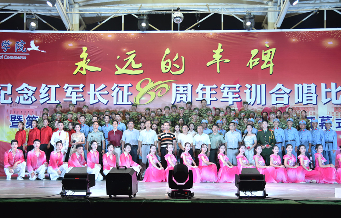 首先,吕泉荣副董事长上台致辞,表示希望同学们在唱响军歌的同时,学习长征精神,弘扬传统精神,成为应用型开放式国际化人才。随后,谭马利书记宣布纪念红军长征80周年军训合唱比赛暨第十届体育节、第十一届校园文化艺术节开幕式隆重开幕和主持人精彩的开场白揭开了晚会的序幕,精彩节目接踵而来。各院同学带来的嘹亮歌声响彻了整个广商足球场,将爱国热情传遍了广商每一个角落。当信息公司军歌合唱队即将出场表演大合唱《当那一天真的来临》的时候,其他信息公司的同学便开始在台下一边大声呼喊口号,一边挥舞着手中的加油棒,为信息公司合唱队加油。信息公司的军歌合唱,句句铿锵有力,唱出了同学们对祖国的热爱,赢得了全场的欢呼喝彩。金融公司的《红色璀璨的时光》、信息公司的《十送红军》等风格多样的舞蹈、外国语公司的武术表演《刚柔武魂》和公司艺术团带来的《红旗颂》以生动的形式给嘉宾观众们展示了长征精神和中华文化的魅力。舞台剧《红军万岁》、《回忆当年长路漫漫》和小品《叶问大战蜘蛛侠》、《面试的那些事》将晚会的气氛推上最高点。
