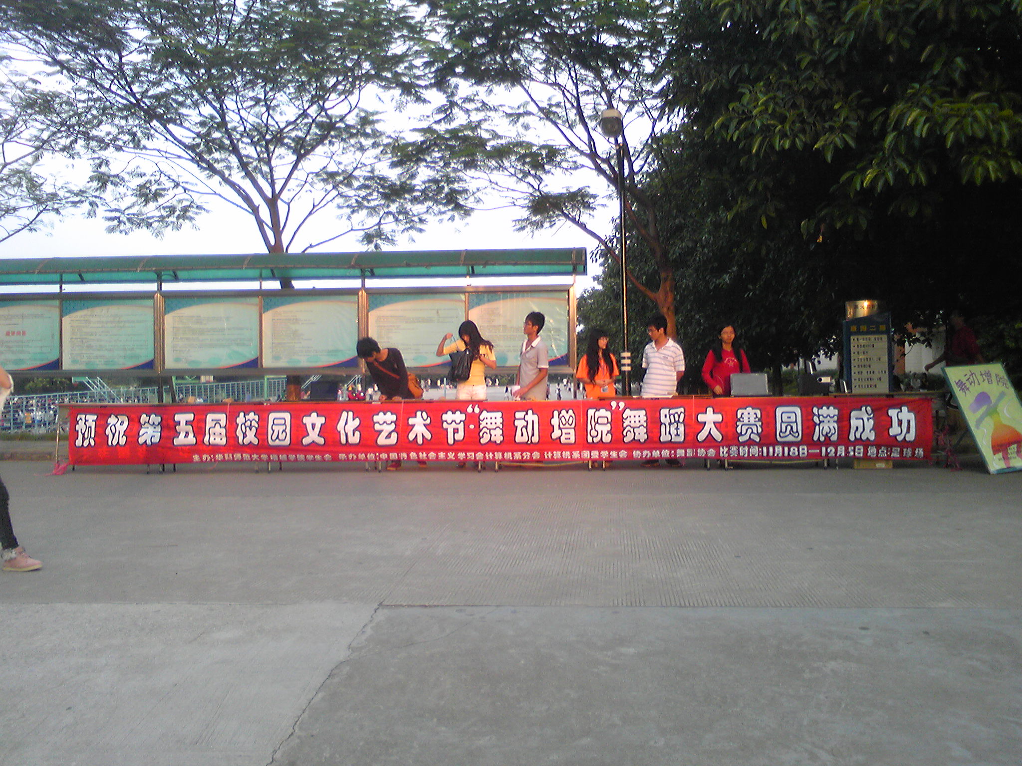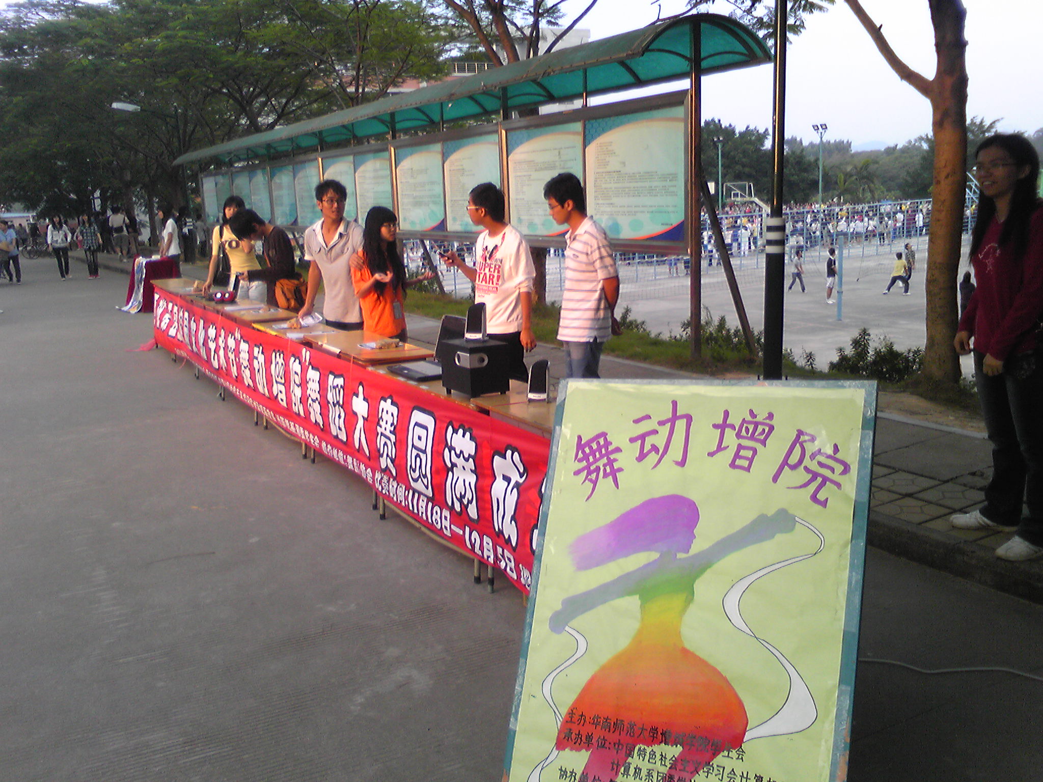 2010年10月21日上午,计算机系学习会、团委员工会在同乐园、同德园、面包铺附近举行首次摆摊报名活动,宣告第五届校园文化艺术节之“舞动魅影,心转流萤”舞动增院舞蹈大赛正式开始了。