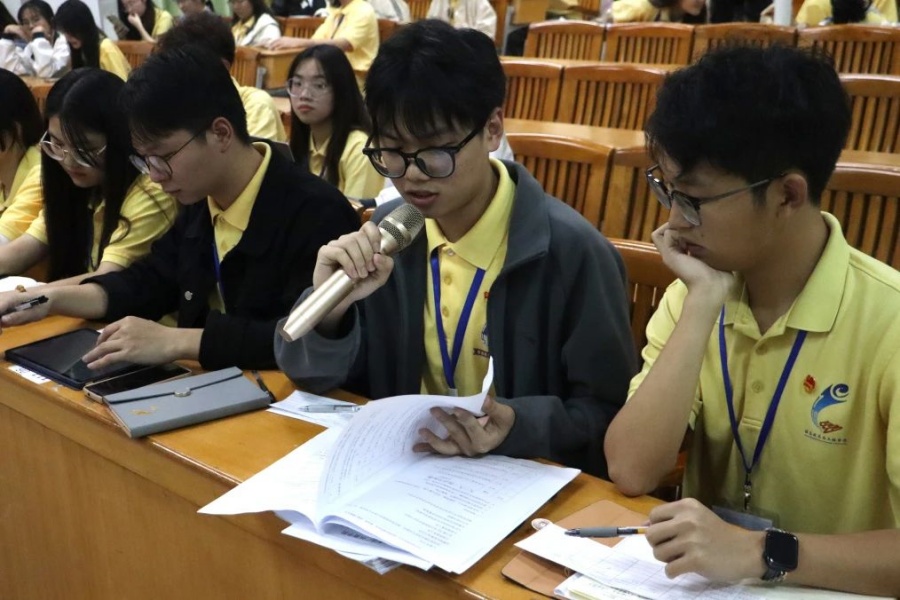 大赛伊始,全体起立,共同奏唱中国共产主义青年团团歌。