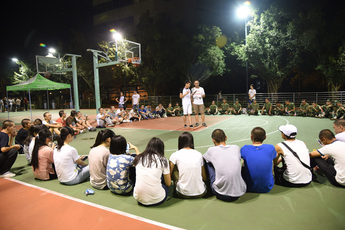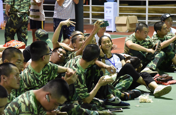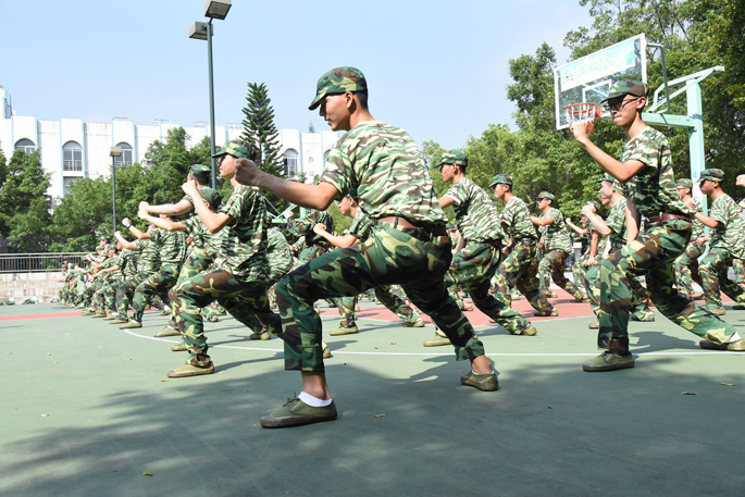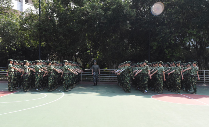 2016年9月15日,军训来到第二天,上午艳阳高照,信息公司16级新生们早早来到康大篮球场,等待教官的到来。suncitygroup太阳新城20、21、22连男女生被分成两个方阵,男生被分配练军体拳,女生则进行日常的训练。