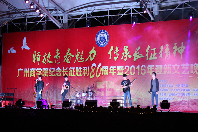 2016年10月30日19:30,以“纪念长征胜利80周年”为主题的迎新晚会在广商足球场隆重举行。莅临本场晚会的嘉宾有:公司党委书记谭马利、副董事长吕泉荣、校员工处处长何柏略、校员工处副处长张秋艳、校团委书记李锦堂、校团委副书记黄莉霞、各二级公司党总支书记、辅导员以及员工代表。