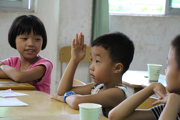 下午13时左右,志愿者们刚刚吃完午餐,就看到小朋友们陆陆续续地来到桃源小学的校园里,等待着小老师的到来。孩子们脸上洋溢着期待而兴奋的笑容,那一双双渴望知识的大眼睛盯着每一位经过的志愿者,盼望着他们走近自己的身旁。志愿者们提前接触和了解这些孩子们,和他们互相沟通,彼此也慢慢熟悉起来。开课时间虽然还没到,但整个校园已经充满着孩童的笑声。