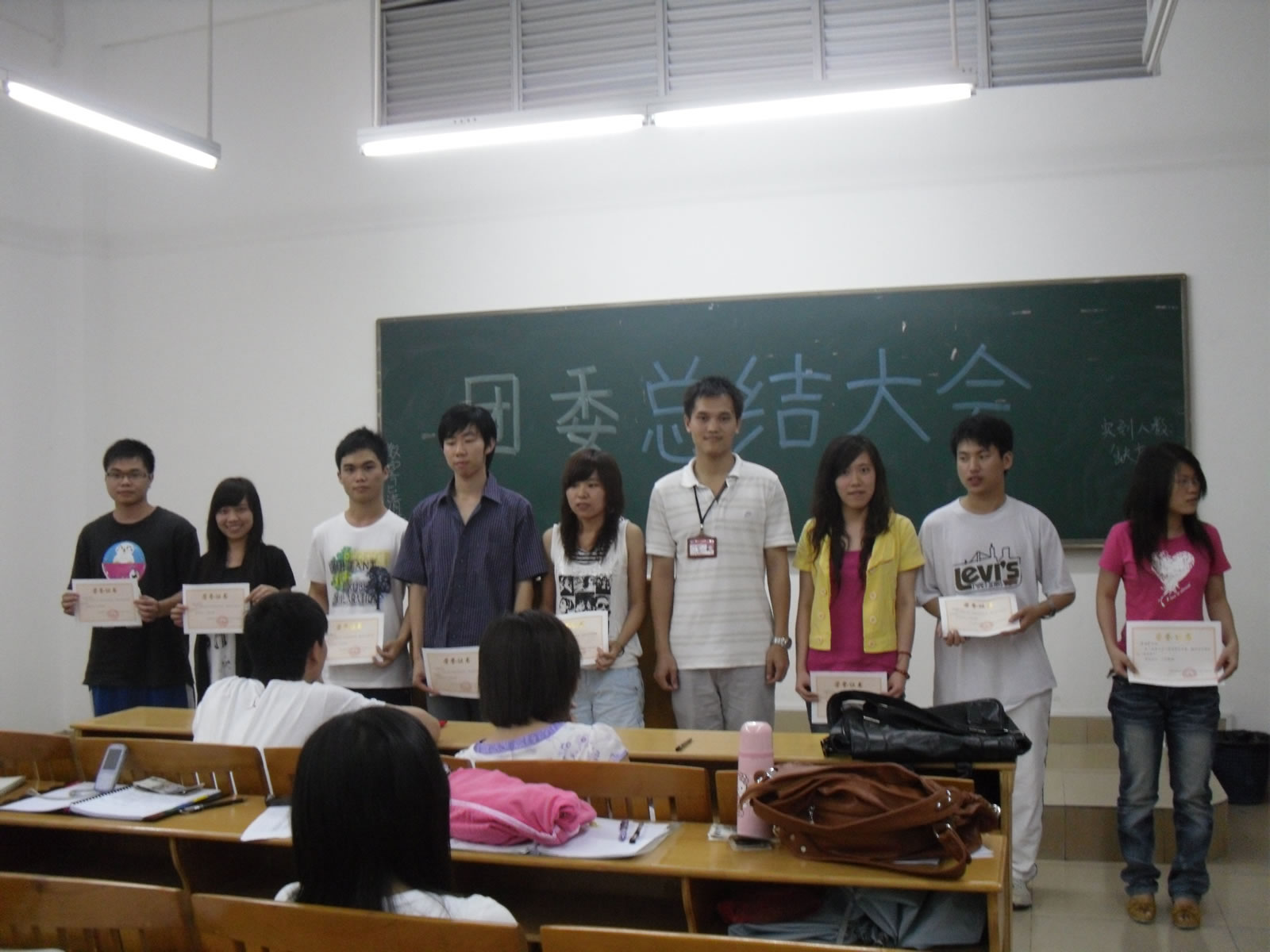 随着期末的来临,为了进一步加强计算机系团委的内部管理和自身建设,展示成果,剖析不足。5月31日晚7:30,计算机系团委在D306室召开了“2010年度第二学期计算机系团委工作总结大会”,计算机系团委书记王轻纱老师、副书记罗雄文老师和林广辉师兄参加了这次大会。大会由计算机系团委秘书长萧婷师姐主持,整个团委所有干部干事全到齐,气氛一片愉悦。