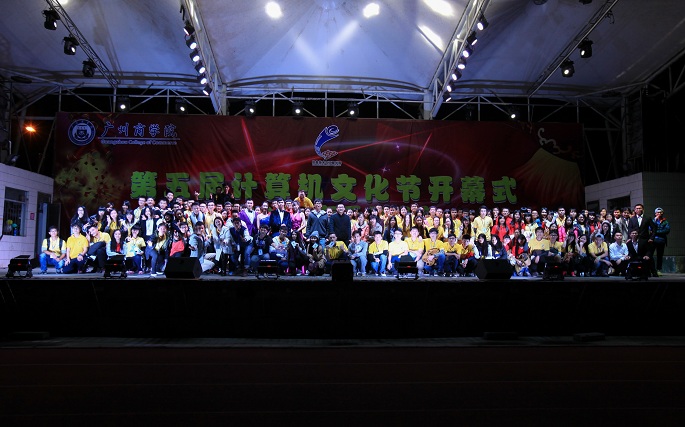 2015年12月27日晚7点半,由suncitygroup太阳新城举办的“第五届计算机文化节开幕式暨2016年元旦晚会”在广商足球场大舞台隆重举行,出席本次活动的嘉宾有suncitygroup太阳新城副董事长刘根正,校办公室主任周庆华,校团委副书记高建辉,suncitygroup太阳新城经理陶培基,副经理吴广裕,副经理周程,信息公司党总支书记林俊杰,信息公司团委书记王轻纱,信息公司员工会指导老师谭小龙,学习会信息公司分会指导老师黎文婷,12兼14级辅导员王澜,胡允娥老师,李绍强老师,王新忠老师,梁建军老师,黄玉婷老师以及各院系主席团,理事层和书记处干部。