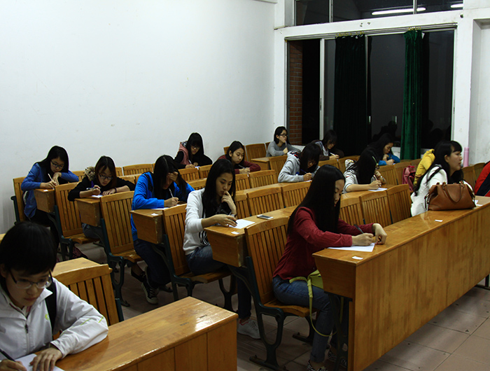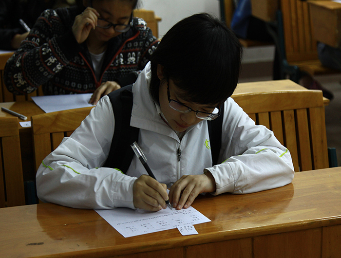 在经过三天的摆摊宣传后,本次活动吸引了许多同学的注意,同学们也积极地报名了此次的比赛,在今天晚上的比赛中,参赛选手们都抱着志在必得的心态参与了本次的初赛。本活动的初赛是以笔试的形式来考查同学们的汉字理解能力。比赛过程中,参赛选手们认真作答不断思考,力求写出一份满意的答卷。在过程中即使有其他选手提前离场也丝毫没有影响到其余选手认真作答。在此期间,工作人员们也有序的管理好考场的秩序,为选手营造出一个安静良好的考场气氛。