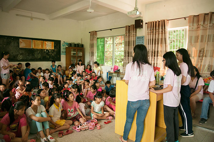 随着《感恩的心》乐章的响起,熟悉的音符让在座的孩子们都忍不住哼唱了起来,过后支教小老师对孩子们进行提问,孩子们也能根据自己的想法真实地回答出来,谈及纷纷畅叙出自己心目中关于父母、老师以及同学的看法或诉求,那真挚的话语无不表达其最质朴的感情。接近结尾时,三下乡支教组的老师们为了感谢孩子们这些天的陪伴,一一派送了由小老师亲手折的纸玫瑰以及服务队准备的文具,那代表着全体支教组心意的小小的礼物捧在孩子们手心里,大家都倍感欣慰。离别在即,可孩子们天真无邪的笑脸仍深深地印在志愿者的脑海中。