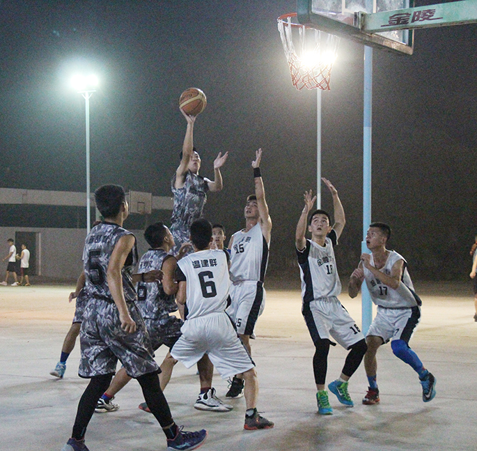 第四节的比赛更是别开生面,这节一开始,公司男队员们就投进了两个三分球,抢先夺得六分。紧接着在防守时,继续采取“人盯人”战术,随着比赛气氛的逐渐紧张,公司男队顺利防下几球。之后,在最后一分钟的比赛里,更是振奋人心。双方竞争激烈,多次罚球,公司男队也在最后一分钟里勇夺一个三分球。