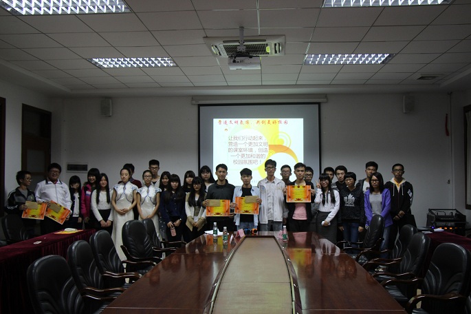 接下来由公司员工会生活部部长蔡书伟以及保卫部部长王泽楷发言,他们表示对各班级配合工作的感谢,以及希望生委能够做好本职工作,一如既往。过后大家一起分享工作感想和表示决心,气氛甚是热烈。最后,由谭小龙老师为本次学风表彰大会作总结,不仅表示对获奖班级的祝贺,也对同学们提出了明确要求,希望受表彰的班级再接再厉,树立榜样,与其它班级共创佳绩。