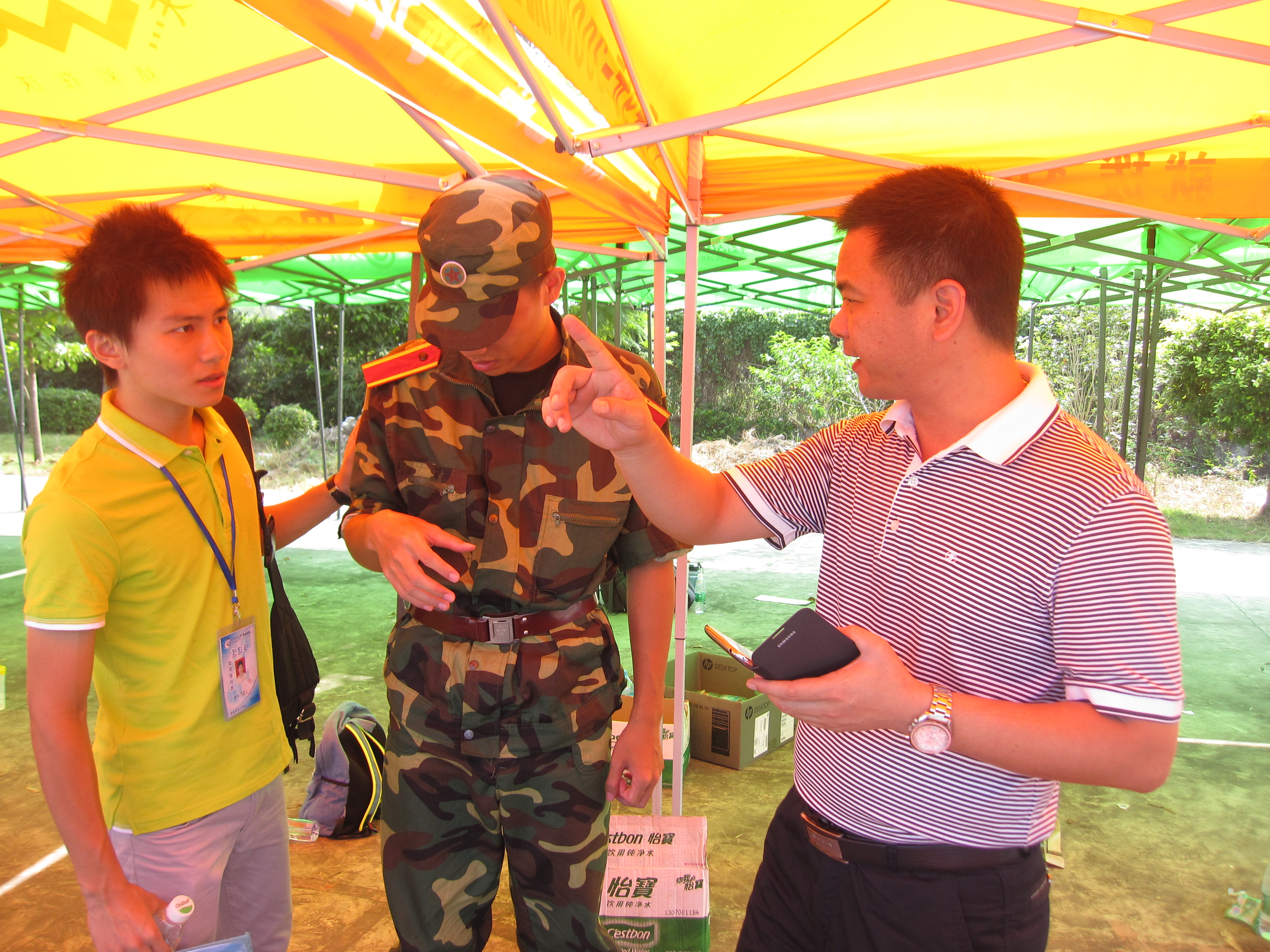 早上的阳光依旧那么灿烂,我系13级的新生如旧在训练场上马不停蹄地操练着。教官们不辞劳苦地为新生们纠正动作并在必要时做示范,尤其是练拳过程中的各种指导。在操练过程中,我系党总支钟远辉书记亲自到达军训现场巡视军训情况并慰问受伤的同学,这在无形中鼓励了不少新生继续坚持训练。随后,我系10级的辅导员张泓老师也来到现场观摩情况。有了老师和师兄师姐深切关怀,相信同学们定能在军训中坚持到最后!