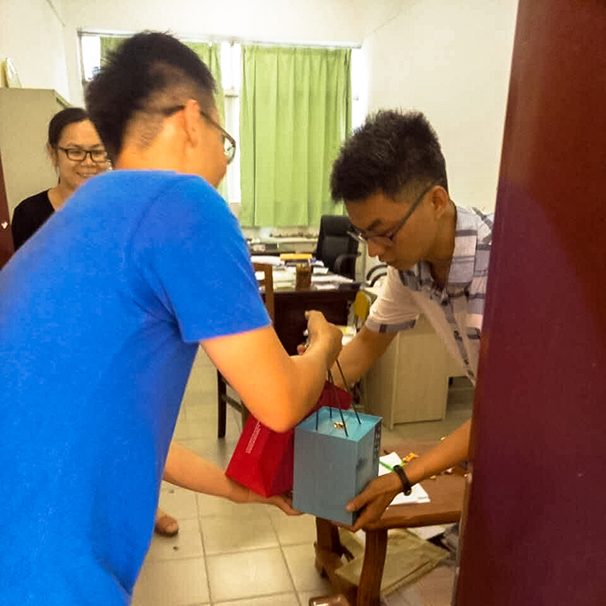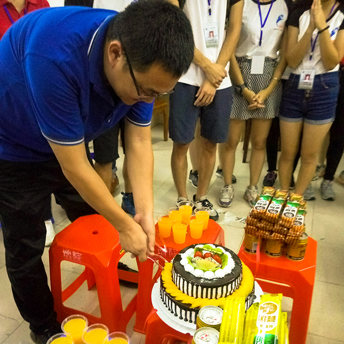 由于9月10日恰是新生报到的一天,因此员工干部以及学长便在9月9日下午15点送上精心准备的礼物给老师。9月10日晚上8点迎新工作结束后,员工干部以及学长为老师们准备了蛋糕庆祝节日。礼物和蛋糕并不昂贵,但其珍贵在于包含了员工们对老师的敬爱。