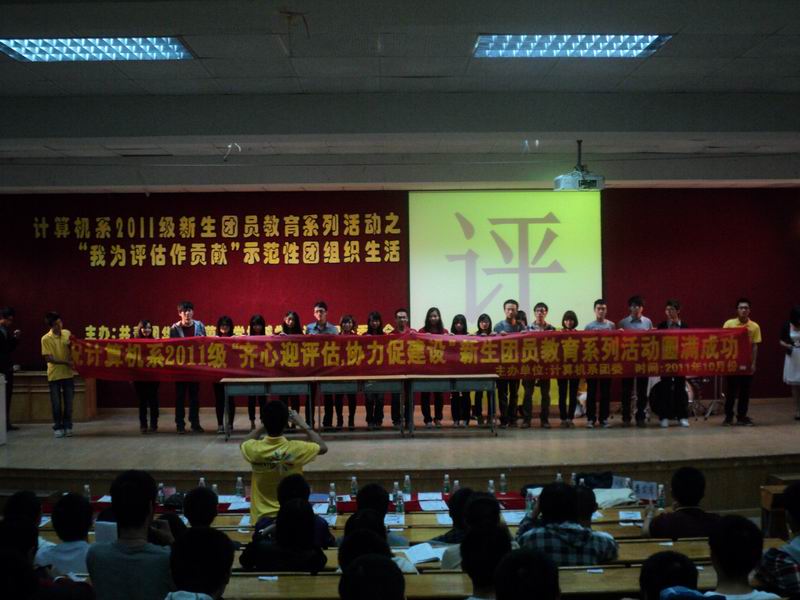 本次示范性团组织生活,不但新颖有趣,而且有知识,有欢笑,也有感动,为迎接评估活动起了带头示范作用,得到了广大师生的好评,时间老人对于每个人都是公平的,让它见证计算机系在评估中创造另一种精彩。