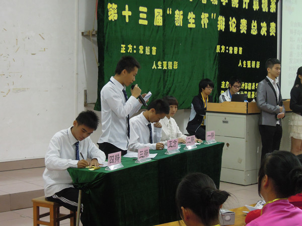 双方一次又一次的交锋,把比赛推到了全场的最高潮,双方的慷慨陈词更是引起了全场观众的共鸣,一阵阵的喝彩汹涌而来。随着比赛的深入,双方都对自己的观点进行了重申与升华。