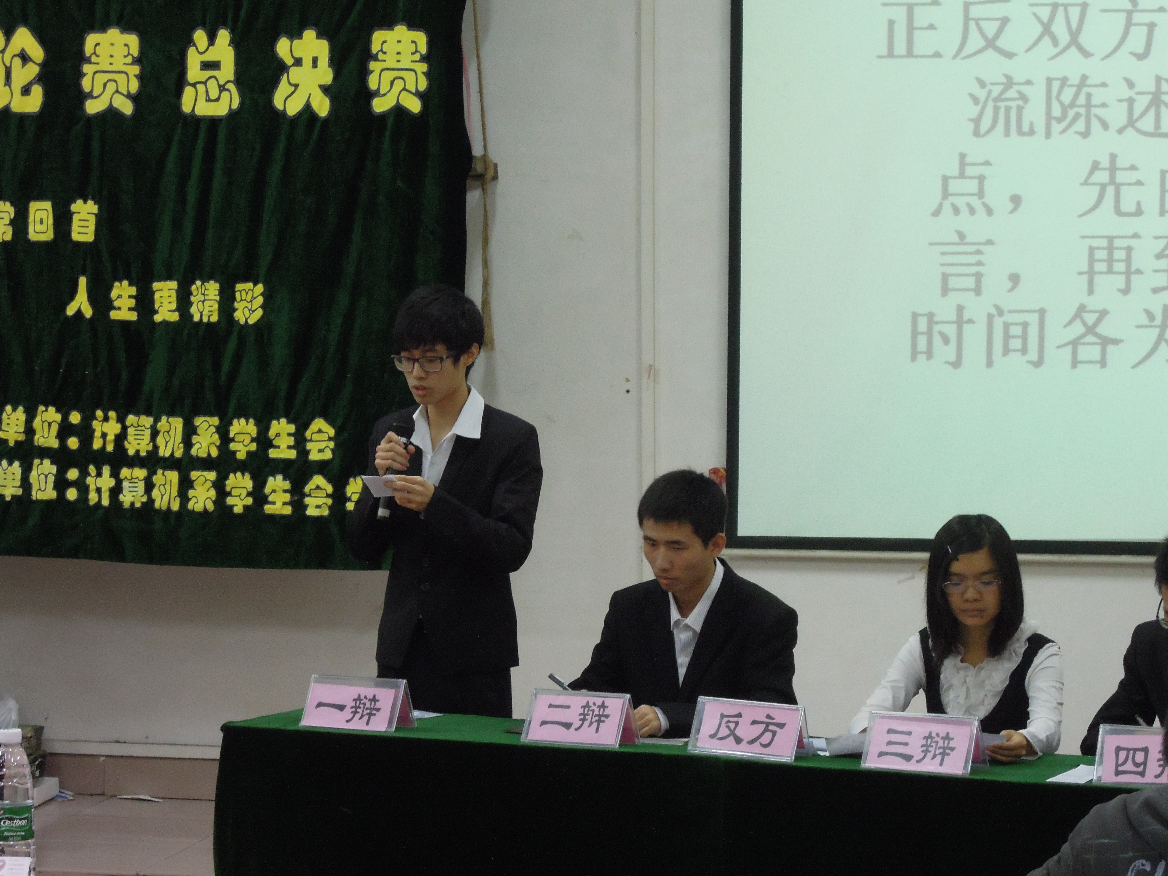 2012年11月24日晚上7:30分,在A109隆重举行了“新生杯”辩论赛总决赛。我系干部干事及其他系员工会正副主席、各辩论队的师兄师姐们等均出席本次比赛。