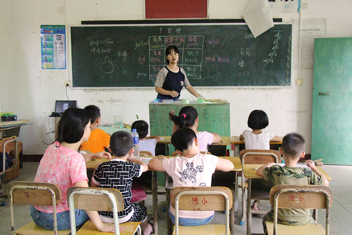 上午8点30分整,孩子们开始认真地上课,与昨日相比,小朋友们越发开朗了,主动地跟支教老师交流叙说自己身上发生的事情,说到有趣的地方时,还手舞足蹈地把当时的情景演示一遍给小老师看,把小老师们逗乐了。这时的小老师和孩子们俨然已经融为一体了。