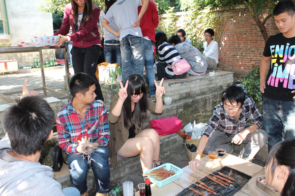在到达目的地旺村后,员工会所有成员先围成一个大的圆圈,玩“一块五”的游戏,以活跃气氛,增进彼此的熟悉。本次游戏,男生作为“一块”,女生作为“五角”,当主持人喊出一个钱数时,各队快速组成主持人所喊的“钱数”,输者退出游戏。这个游戏令活动的气氛一度到底高潮,也使各成员的默契度提升。第二环节是通过抽签组成小组进行烧烤,抽签使不同部门成员在一起,使原本不太熟悉、拘谨的他们,渐渐变得健谈、熟悉。在烧烤活动之后,各成员各自“自娱自乐”,各自组成小组玩桌球、谈笑嬉戏……
