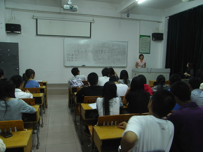 计算机系团委于2011年9月25日在教学楼C104召开了2011计算机系团委干部干事见面会暨团委书记交接会议。出席本次会议的人员有计算机系团委现任书记王轻纱老师,团委前任书记张璐斯老师,副书记宁文老师,副书记邓俊同学,秘书长苏惠君同学,组织部部长丁剑慧同学以及系团委所有的干部干事。