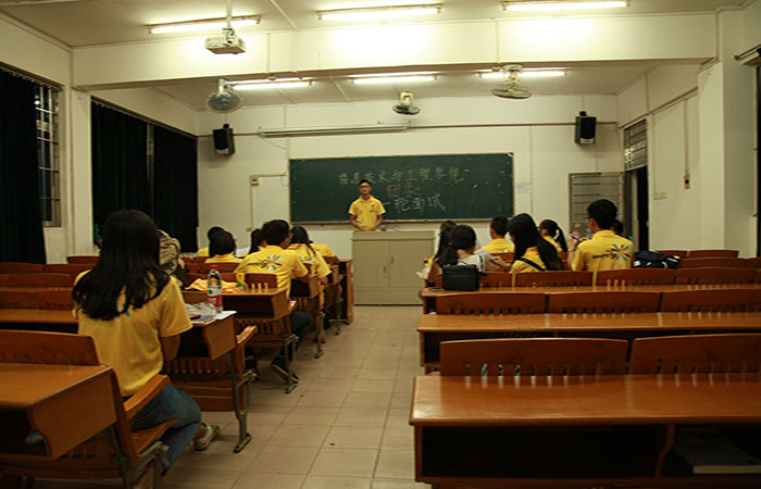 下课铃声的余音尚未散去,上身着黄色工作服的身影便早早地在康大C2栋教学楼课室之间忙碌了开来,无论是各部门面试位置的安排、报名表的核对,亦或面试前各部门内部最后的交流,在一切准备就绪后,suncitygroup太阳新城团委第一轮面试于2015年10月9日18:45在C2教学楼307和308课室中井然有序地进行着,也在略显紧张的气氛中拉开了序幕。