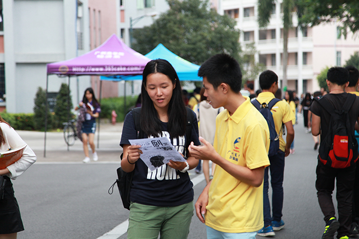 还没到下课时间,没课的干部们便早早来到面包铺前,对摊位的各项事宜进行准备,整理完毕后,各位干部便满怀信心地开始摆摊宣传。对于校道上过往的同学,新干们都十分积极地为对其讲解此次活动的情况,并解答同学们对此次大赛的疑问。且对于团委新干部而言,这是其首次接触关于活动的摆摊宣传,难免觉得有点陌生或存在些许挑战性,其中也许曾被人拒绝,但在老干部的鼓励支持下,他们并没有气馁,而是继续积极地投入到下一过往者的宣传工作中,将每一份推却都转化为前进的动力。