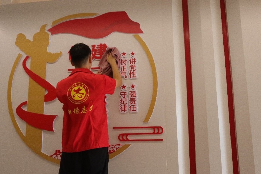 “红潮”实践服务队来到党群服务中心,询问工作人员清理的相关事宜,积极协助党群服务中心打扫各办公室与会议室的卫生,尽管时间紧而任务重,但队员们依然有条不紊,将清洁工作合理分工后各自到位,迅速开展清洁工作,以最快的速度圆满结束此次清洁工作。事后得到党群服务中心各工作人员的肯定与赞扬。