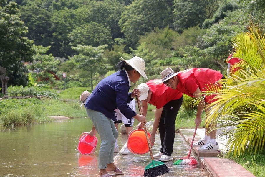 至此,“红潮”实践服务队顺利完成为期两天的员工教学辅导工作后,协助当地开展清洁志愿服务活动,充分发挥志愿服务精神,将志愿服务落实到实处,看着自己的劳动成果,队员们充分感受到了志愿服务与劳动带来的快乐,露出了由心的笑容。