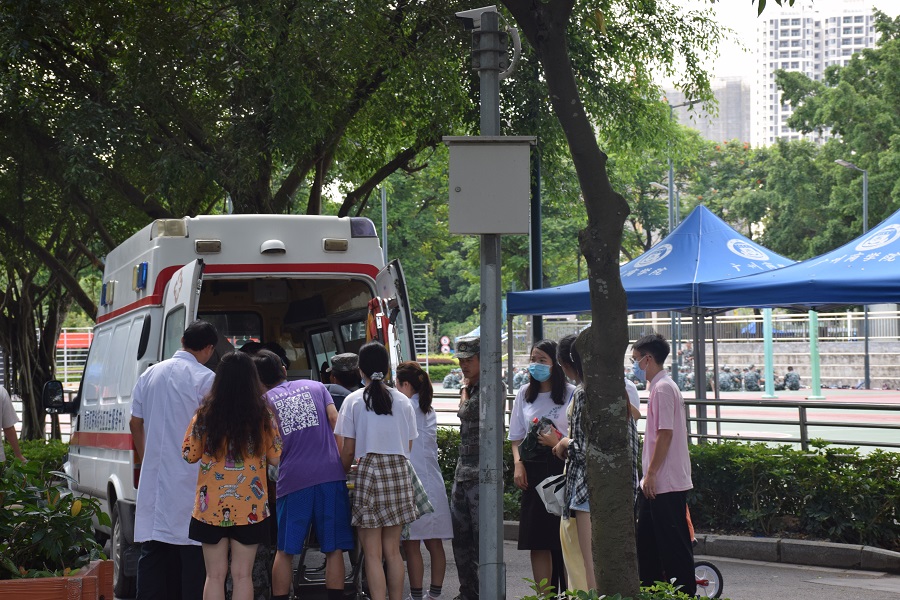 坚持的品质固然可贵,但也要量力而行。前几天淫雨霏霏转变为烈火骄阳,天气的多变让同学渐渐出现不适状况,但教官直觉敏锐,反应迅速,立即停止训练,将感到不适的同学迅速送至大本营休息,并安排好看护人员,助导们紧急联系现场医护人员,做好基础的应急处理后,以最快的速度,将这位同学送至就近医院就医,最终同学身体并无大碍。