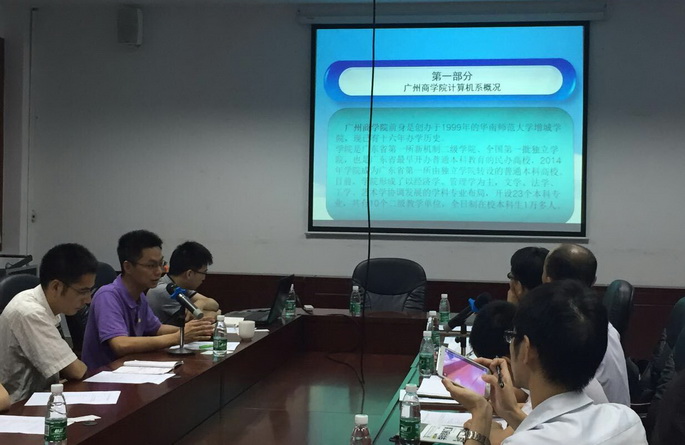 陶培基对番禺职业技术公司老师和同学的到来表示热烈的欢迎,并介绍了公司和计算机系概况、计算机系创新教育开展情况。吴广裕就计算机系创新创业竞赛提升人才培养质量的做法和服务外包创新大赛指导工作情况进行了深入的介绍。连续指导服务外包创新大赛五年的教师代表何文海介绍了公司服务外包创新大赛开展的具体情况。