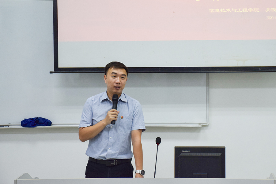 关俊明首先对信院当今的建设现状与未来几年的教学规划进行详细介绍,以此告诉同学们要珍惜自己的全新起点,随后,关俊明以今年新冠疫情作为背景,向大家讲解了国家防控防疫取得成绩背后的伟大付出,号召同学们不仅要向抗疫英雄致敬,更要从此时此刻开始,懂得改变自身固有思维,转变自身自我定位,树立肩负起时代担当的意识与思想。关俊明还向大家介绍了信院2020年获得国家奖学金奖项的三位优秀同学,鼓励大家向身边优秀青年榜样学习,争做新时代的青年先锋。会议最后,关俊明倡导大家要规划好自己的老员工活,打造好自己的未来之路,在新时代背景下,为祖国建设与社会发展奉献力量,为实现民族伟大复兴梦砥砺前行。