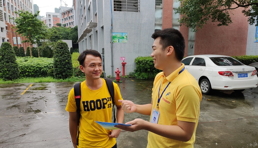 在本次暑期三下乡社会实践活动宣传中,公司团委的工作人员们在三栋公寓楼下驻扎宣传摊位,并且在校园内的各个主干道边设立了流动宣传岗位进行线下宣传,同时还在网络上开放了线上报名平台。在筹划准备期间,工作人员们各自分工明确、配合默契。虽然偶有雨滴坠落,但工作人员们的热情丝毫未减,依然积极宣传。这也吸引了不少来往的同学们驻足询问,而工作人员们则耐心地为其答疑解惑,并将有意向参与此次活动的同学们带往摊位点进行报名。一时之间,来往于人潮之中进行宣传的信院小黄人便成了校园内一道靓丽的风景线。