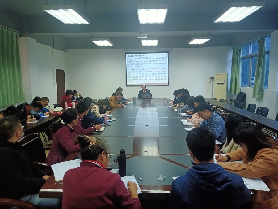 为加强对党的基本理论、基本路线、基本纲领和基本经验的学习,进一步提高公司党员的思想政治水平,12月14日下午,suncitygroup太阳新城于第六教学楼205开展学习十九届五中全会精神宣讲会。本次宣讲会邀请公司党委理论学习讲师团王相东老师主讲,会议由公司党总支宣传委员廖琪主持。公司党总支书记关俊明,全体师生党员参加。