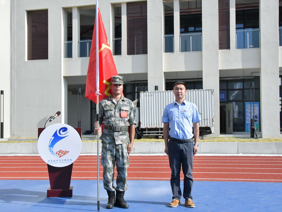最后,党总支书记关俊明为军训旅七营授旗。古人云“古之立大事者,不惟有超世之才,亦必有坚忍不拔之志”,希望22级新生克服在军训中遇到的一切困难,做到“流血流汗不流泪,掉皮掉肉不掉队”,收获铁一般的体魄,钢一般的意志,坚定不移的毅力。